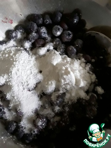 А мы в это время займемся начинкой. Соединяем чернику с сахаром и крахмалом и все перемешиваем.