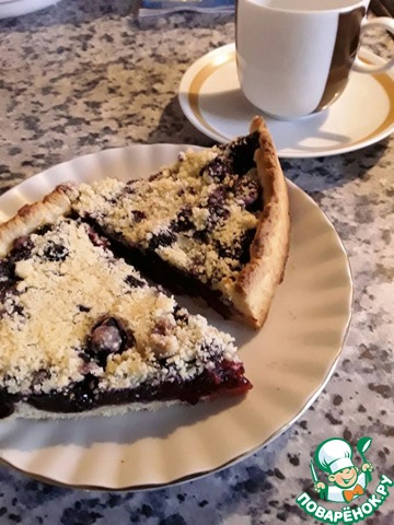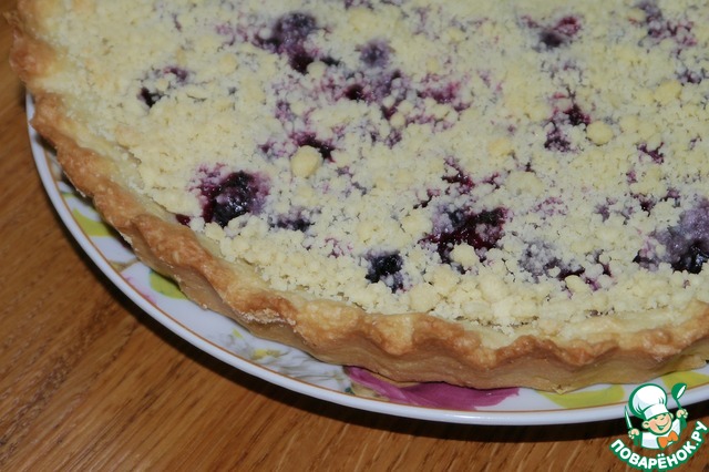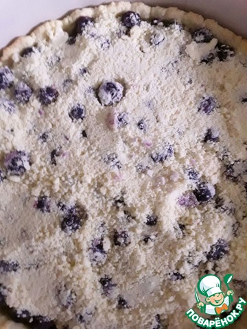 Выкладываем на тесто начинку из ягод. Посыпаем оставшейся крошкой и равномерно её распределяем. Ставим пирог обратно в духовку на 25-30 минут. Следите за своей духовкой. Когда тесто подрумянятся можно выключать.