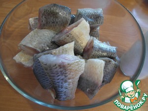 Нарежьте кусками - примерно на 2 - 3 кусочка, зависит от величины рыбы. Посолите. И уберите часа на 3 в холодильник. -