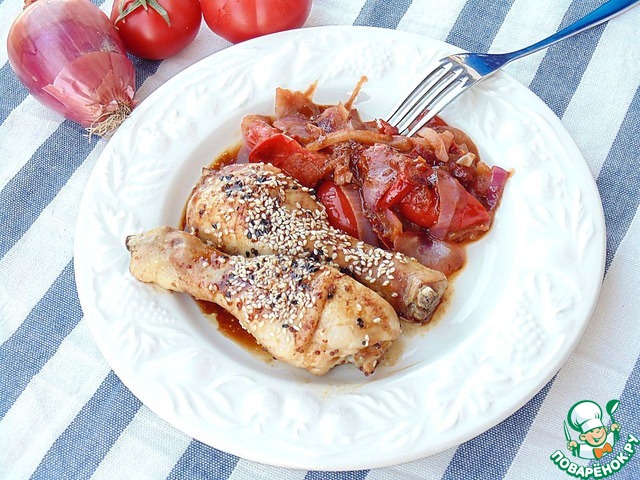 Рецепт «Глазированные куриные ножки с томатным гарниром»: