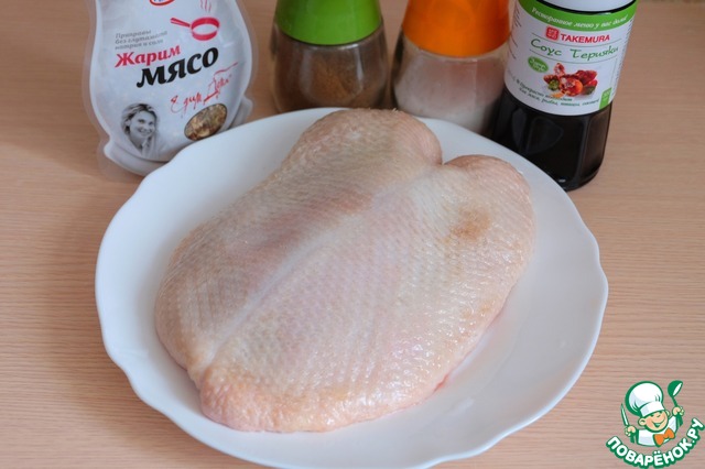 Утиную грудку равномерно покрыть приготовленной смесью.