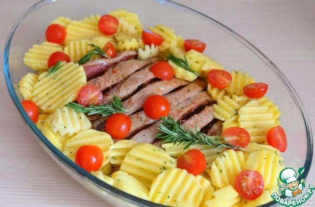 Рецепт «Утиная грудка с картофелем и помидорами»: