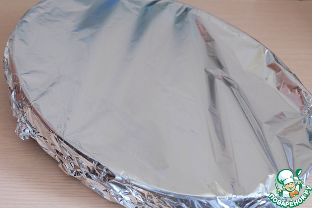 Форму накрыть фольгой и отправить в разогретый до 220-230 С духовой шкаф.
