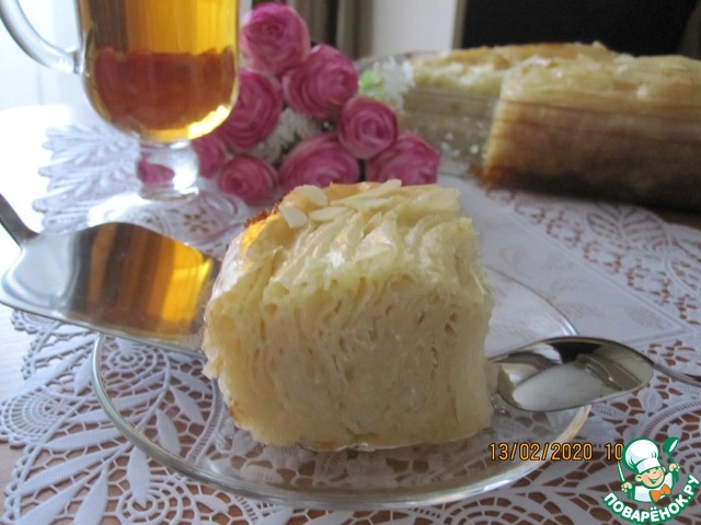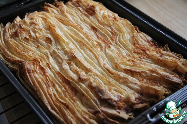 Я как-то сама делала фило (очень люблю штрудель). Пробовала штрудель и с домашним, и с готовым. Честно говоря, домашний вариант (именно для штруделя) мне понравился больше, а вот эта штуковина, я думаю, из самодельного ТАК замечательно не получится. К сожалению, я так и не поняла из перевода настоящее название этой сладости. Потому и пришлось назвать, как подсказала фантазия.