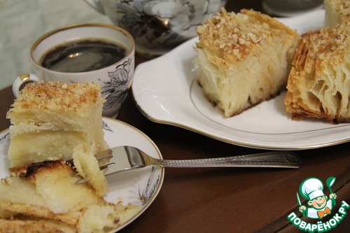 Поедать эту сладость, расслаивая листики выпечки руками, очень интересно, но можно и приборами для десерта, конечно. Да какая разница, в конце концов? Кому как нравится!
