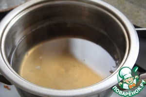 Сначала сварить сироп: сахар залить водой, нагревать до растворения и затем добавить лимонный сок. Довести до кипения и варить 1-2 мин. Остудить.