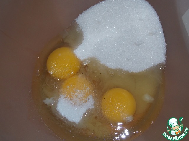 Яйца взбить с сахаром и солью в течении 10 минут.