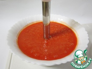 Пробъём составляющие маринада погружным блендером до получения однородной эмульсии в течении 30 секунд.