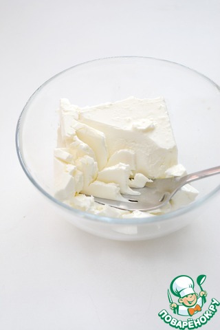 Сыр фета разомните вилкой до однородного состояния. Если сыр плотноватый - добавьте пару ложек сметаны