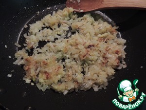 • Вливаем к луку нашу кипящую жидкость из сотейника, перемешиваем и теперь все вместе доводим до кипения.