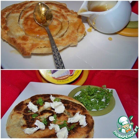 Т. к. я готовила лепешки по этому рецепту в первый раз, то в порядке эксперимента сделала одну потоньше, в вторую потолще.