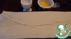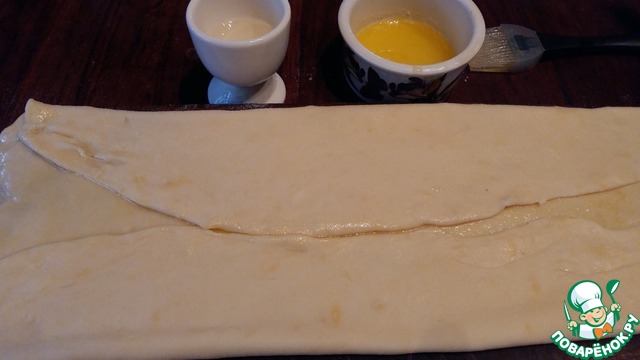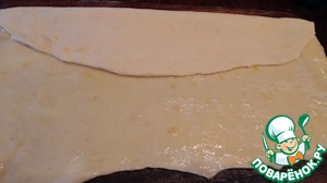 Сворачивать и промазывать тесто таким образом еще 2-3 раза.