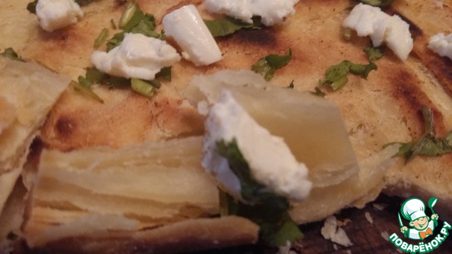 Вторую лепешку, обжарив на сковороде, я все-таки отправила в духовку и запекла при t 220 гр. около 10 минут.
