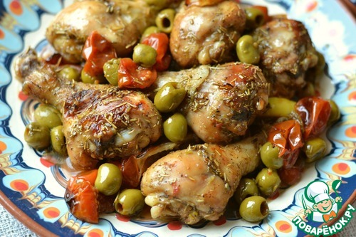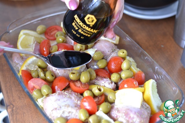 Оливки выкладываем на курицу.