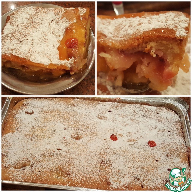 При подаче нарезать кусочками и щедро посыпать сахарной пудрой. -