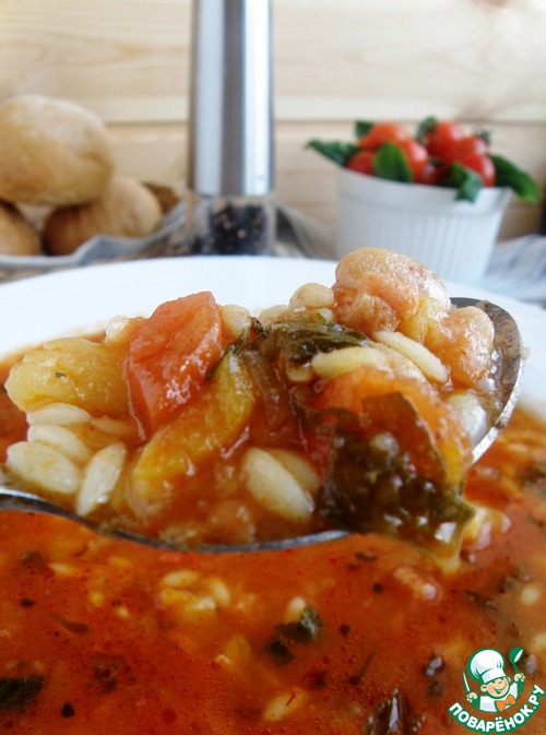 Рецепт «Суп томатный с орзо и фасолью»: