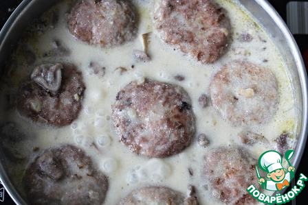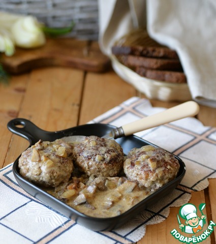 Это простое, но очень вкусное блюдо! Для приготовления биточков лучше всего использовать говяжий фарш, а грибы взять лесные. На гарнир к ним можно подать картофельное пюре или рис.