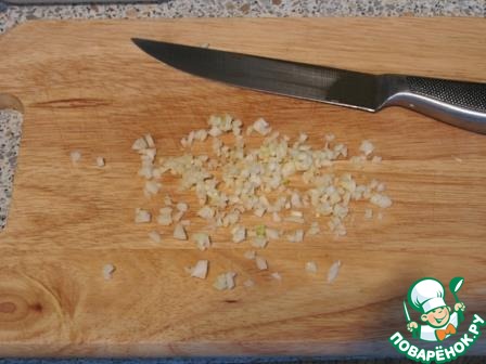 Чеснок измельчить и добавить к луку.