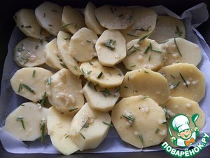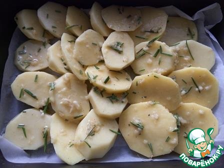 • Выложить картофель на противень в один слой (если половинки, то срезом вниз).