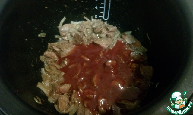Рецепт «Печень куриная в томатно-соевой заливке»: