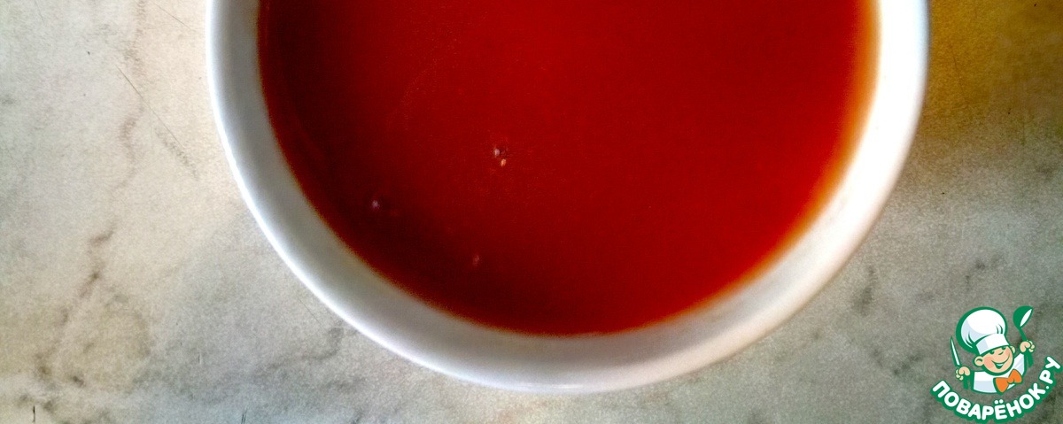 Займемся соусом. Томатную пасту, сахар, соль, черный молотый перец смешать с горячей водой. Точное количество сахара, соли и перца будет напрямую зависеть от томатной пасты - соус обязательно нужно пробовать.