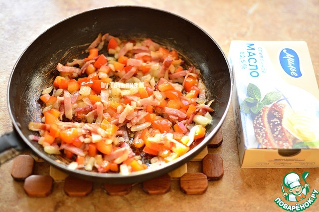 Очень вкусная и ароматная закуска быстрого приготовления с жареным беконом, болгарским перцем и луком! Из серии "гости на пороге", когда нужно быстро и вкусно встретить гостей!
