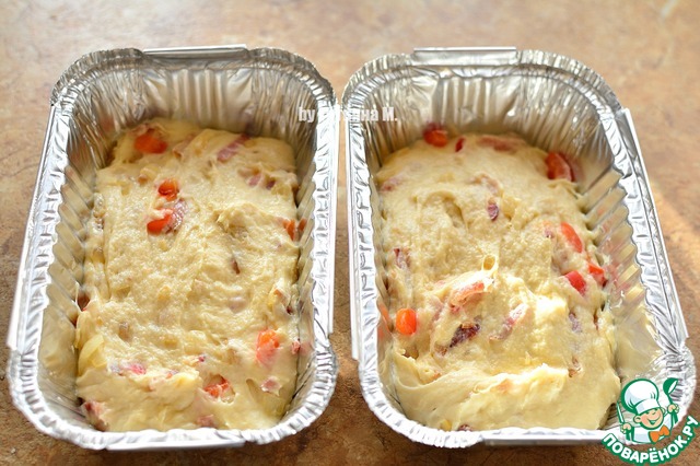 В тесто вмешать начинку и выложить тесто в форму для выпечки (у меня 2 небольшие формочки) -