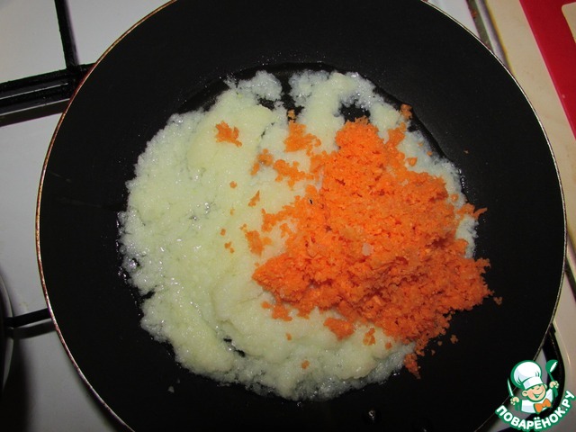 • Измельчить морковь в блендере, добавить к луку.