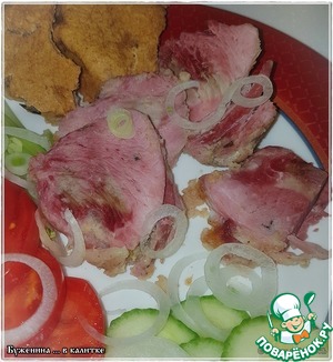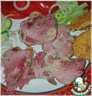 Но не могу не написать, для тех, кто захочет его повторить, ОБЯЗАТЕЛЬНО СОБЛЮДАЙТЕ ТЕМПЕРАТУРНЫЙ РЕЖИМ, т.к. нитритная соль при высокой температуре (свыше 100 град.Цельсия) становится очень опасной, в мясе образуются соединения, приводящие к образованию раковых заболеваний.