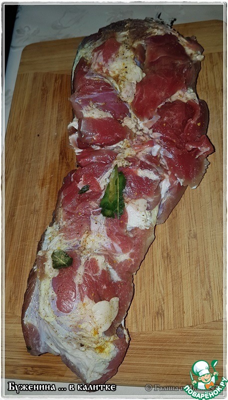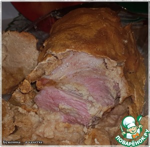 • А дальше мясо отправляется в духовку. Температура духовки – сто градусов. Запекать до достижения внутри мяса температуры – семьдесят градусов.