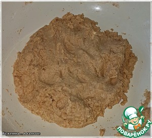 Пока мясо будет проветриваться, надо сколотить ту самую калитку. Ржаную. Три компонента. Ржаная мука, соль, вода. Смешать в пропорциях, чтобы не пересолить, конечно, и получить вот такое тесто. Мягкое, но не текучее. Объем теста... примерно около двух стаканов.