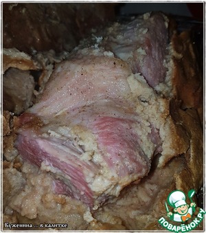 Надо все очень тщательно проверить, уплотнить. Чтобы мясо плотно было обмазано тестом и нигде не было никаких нарушений этой калиткиной оболочки.