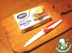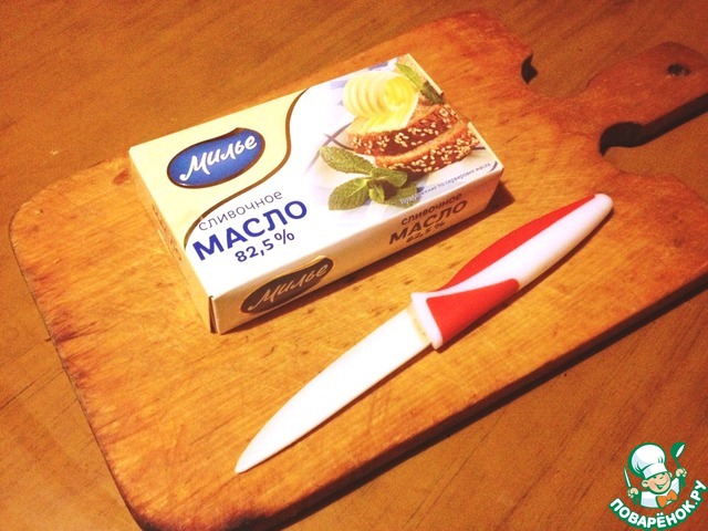 Масло заранее вытащить из холодильника, нарезать кубиками.