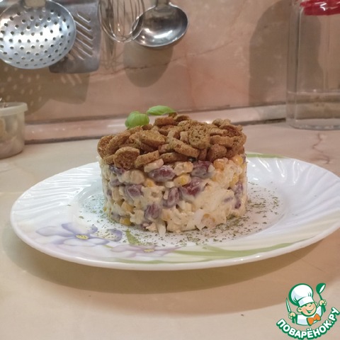 Рецепт «Салат с фасолью, сыром и сухариками»: