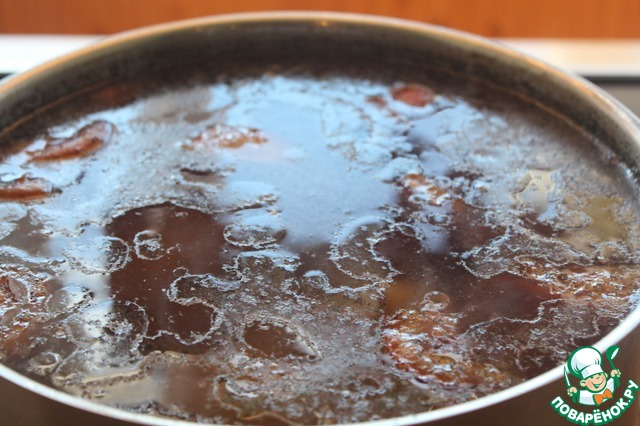 Залить мясо 3 л. холодной воды и поставить на огонь.