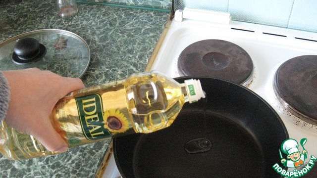 Наливаем в сковороду подсолнечное масло, даем разогреться