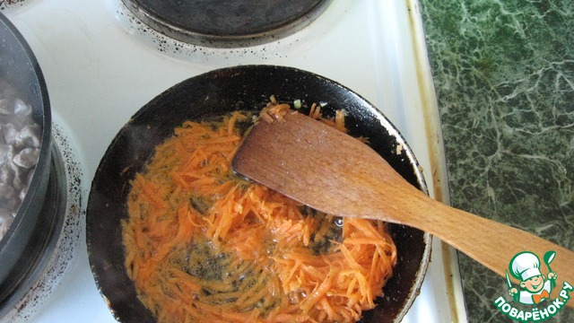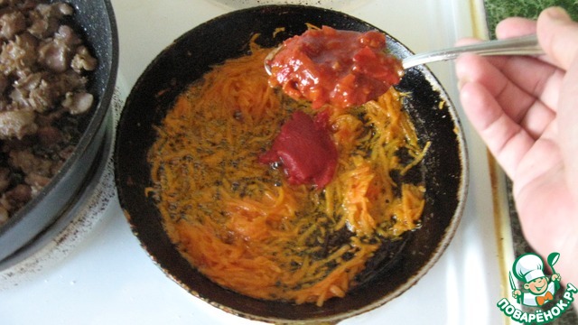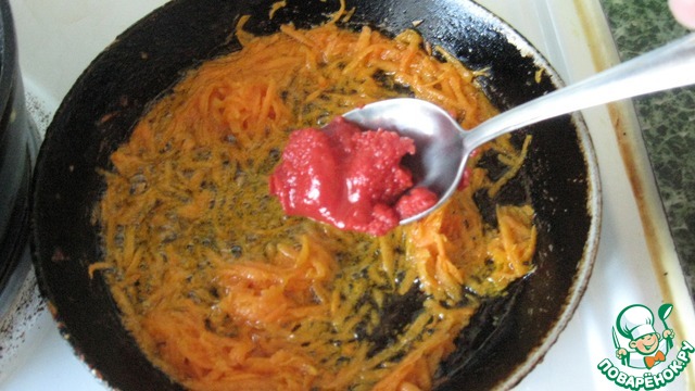 Когда морковь станет мягкой добавляем половину столовой ложки томатной пасты