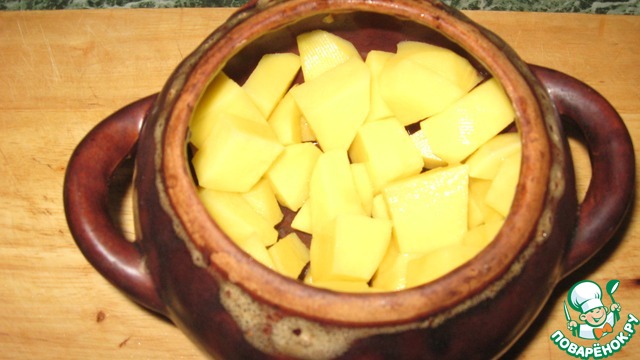 Рецепт «Куриные желудки с картофелем в горшочках»: