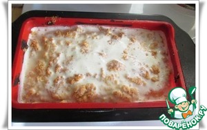 На дно формы (22 х 18 см) насыпаем тонкий (!) слой масляно-мучной крошки.