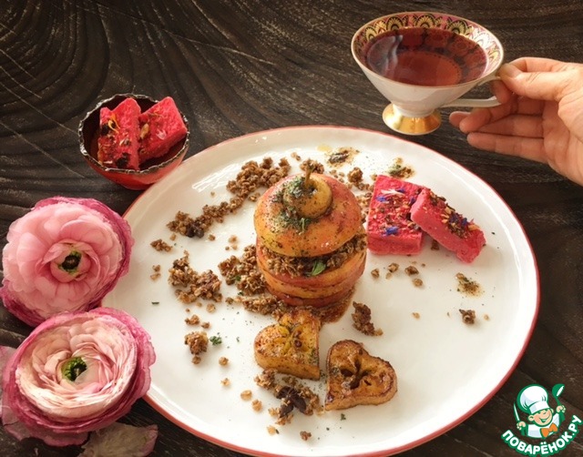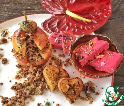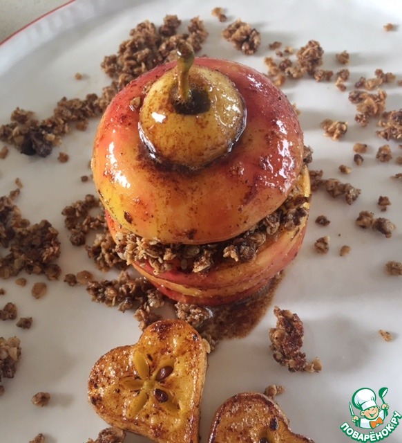 Возьмите наш соус и полейте яблочко и овсяную смесь.