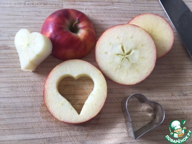 Разрежьте на дольки чуть меньше см и вырежьте сердцевину. -