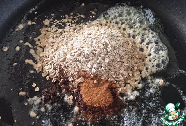Растопите и всыпьте овсянку. Добавьте корицу, гвоздику и бадьян.