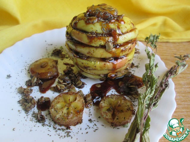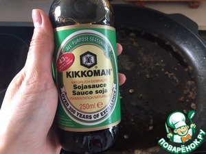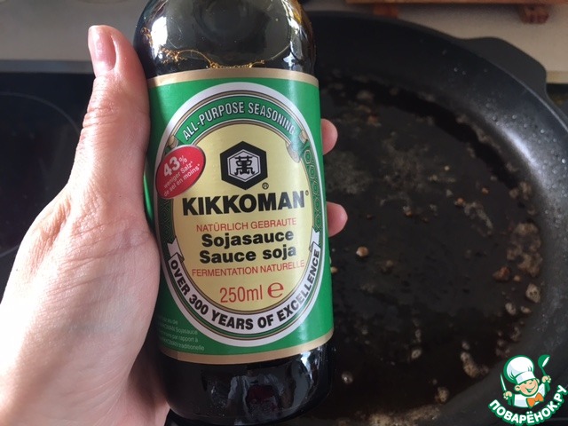 В сковороду, где вы только что обжарили яблочки, влейте соевый соус, лимонный сок и мед.