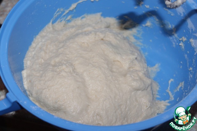 Добавляем молоко и яйцо, хорошо вымешиваем миксером со специальными насадками для теста в течение 5 минут.