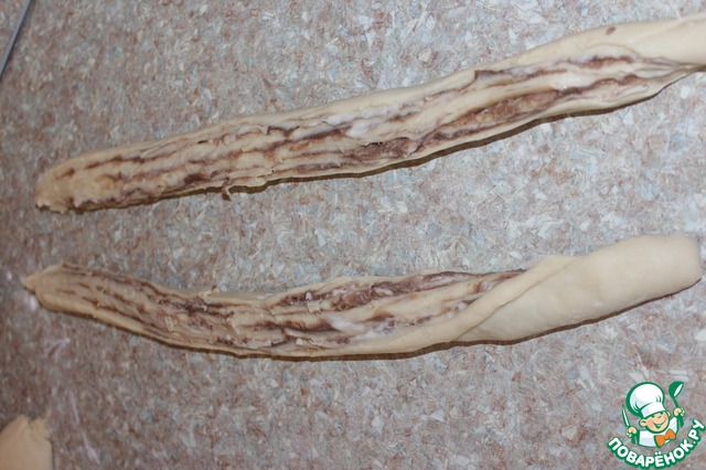 Раскатываем каждую в прямоугольник толщиной 0,5 см.