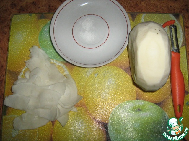 Соскоблим специальным ножом 20 полосое для украшения -"лепестков". Чуть посолим их и отложим в сторону. -