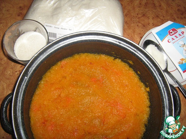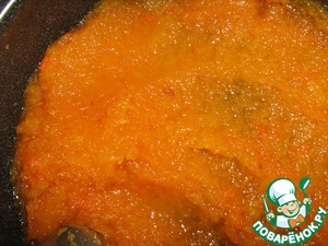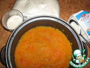 Запеченную тыкву растолочь в пюре, добавить сахар и ванильный сахар.