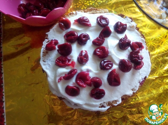 Пропитываем разрезанные коржи вишневым сиропом