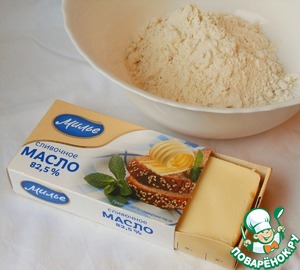 Сливочное масло ТМ Милье порубить ножом с мукой, сахаром и разрыхлителем и растереть в крошку.