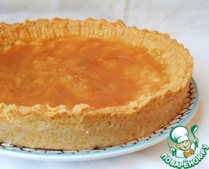 Готовый корж смазать повидлом, джемом, конфитюром или вареньем по Вашему вкусу. У меня - домашнее яблочное повидло.